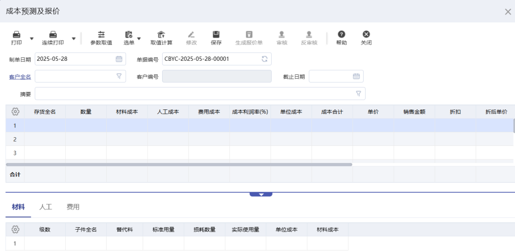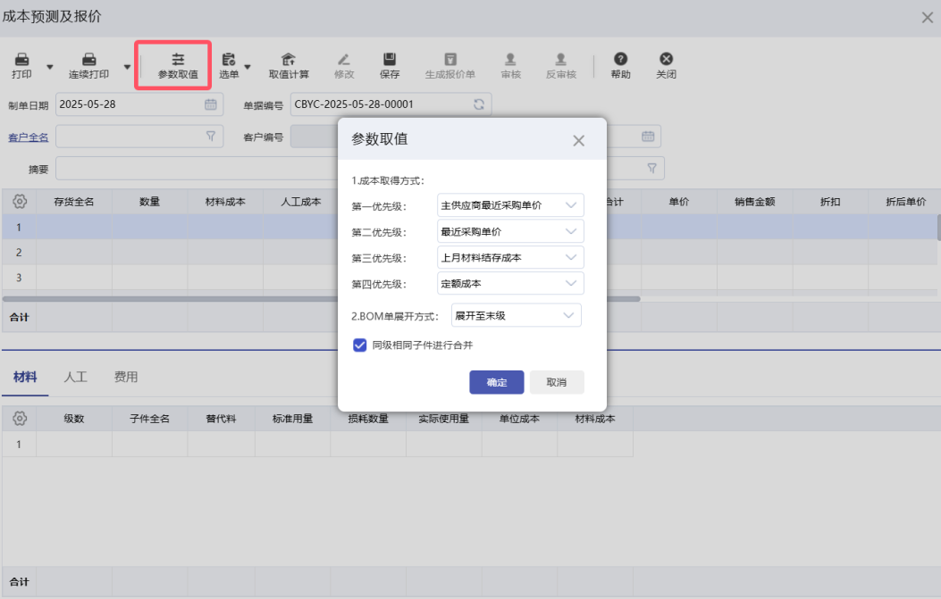 通过这种按“料、工、费”的方式,系统能够合理真实地显示出制造该产品所需的生产成本,为企业制定报价策略提供了全面、准确的数据支持。